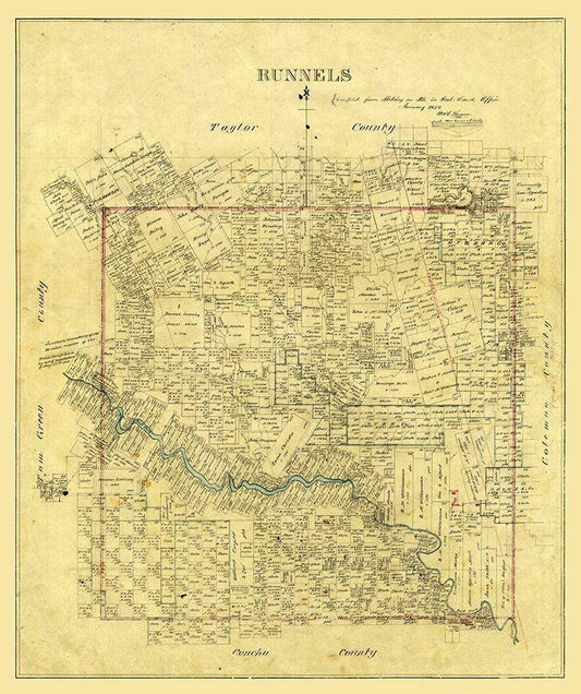 Runnels County Texas -1878 White Modern Wood Framed Art Print with Double Matting by Unknown