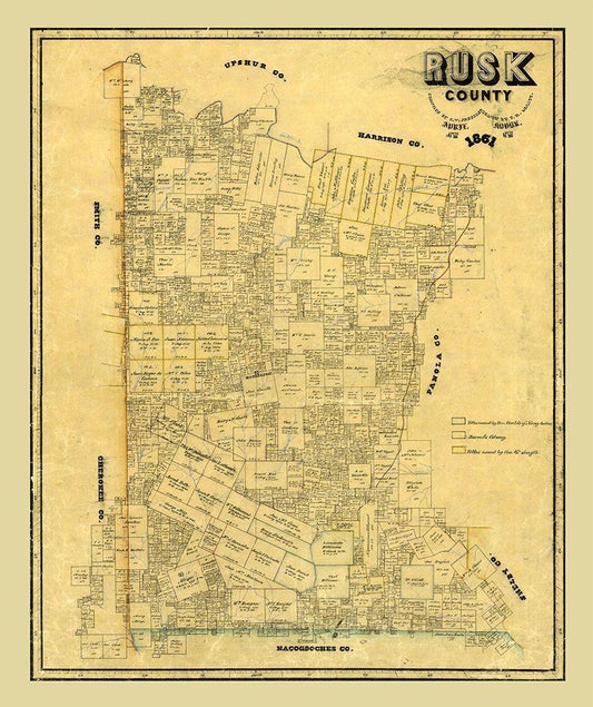 Rusk County Texas - Pressler 1861 White Modern Wood Framed Art Print with Double Matting by Pressler