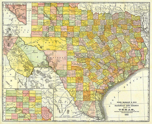 Texas Railroads and Counties - Rand McNally 1882 White Modern Wood Framed Art Print with Double Matting by Rand McNally