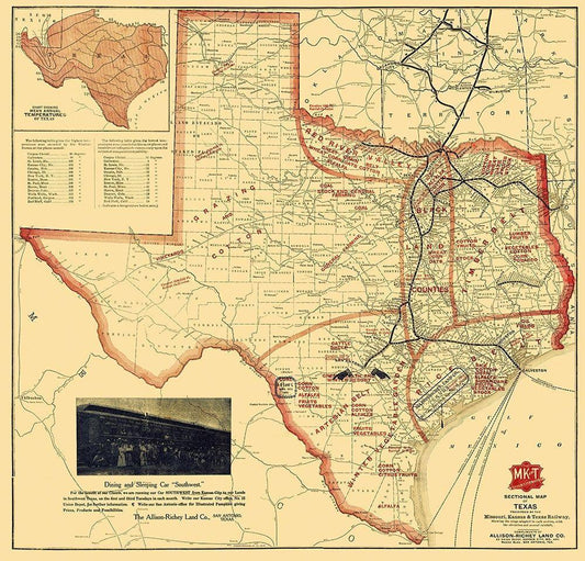 Missouri, Kansas and Texas Railroad - Parker 1907 White Modern Wood Framed Art Print with Double Matting by Parker