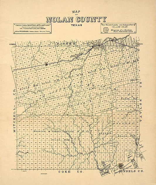 Nolan County Texas -1890 White Modern Wood Framed Art Print with Double Matting by Unknown
