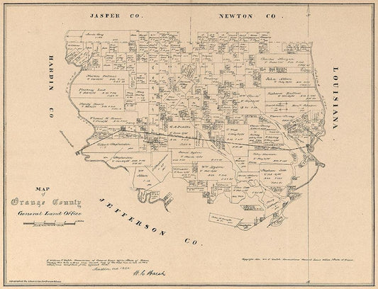 Orange County Texas - Walsh 1880 White Modern Wood Framed Art Print with Double Matting by Walsh