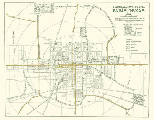 Ft. Worth Texas Plan - Dunn 1914 White Modern Wood Framed Art Print with Double Matting by Dunn