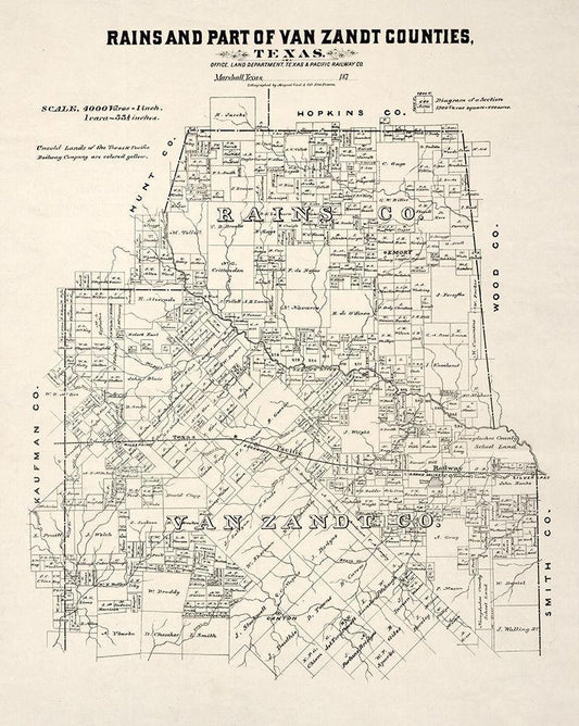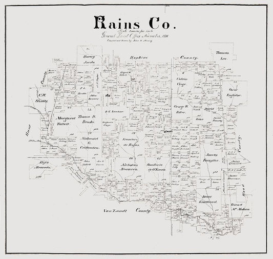 Rains County Texas - Maxcy 1888 White Modern Wood Framed Art Print with Double Matting by Maxcy