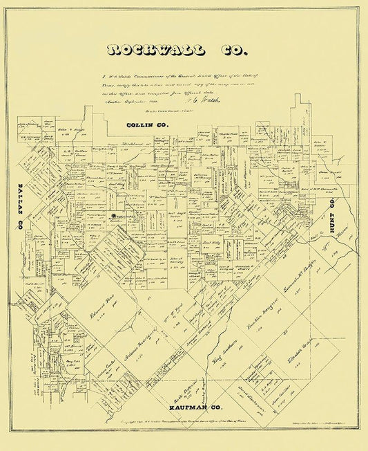 Rockwall Texas Landowner - Land Office 1880 White Modern Wood Framed Art Print with Double Matting by Land Office