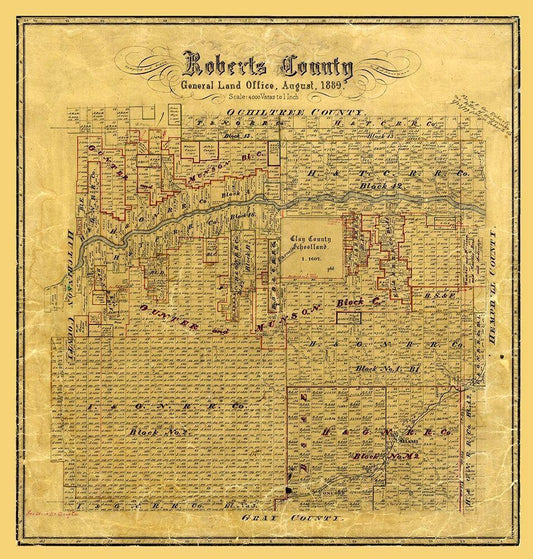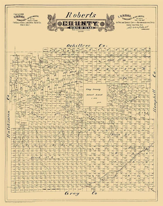 Roberts County Texas - Hall 1888 White Modern Wood Framed Art Print with Double Matting by Hall