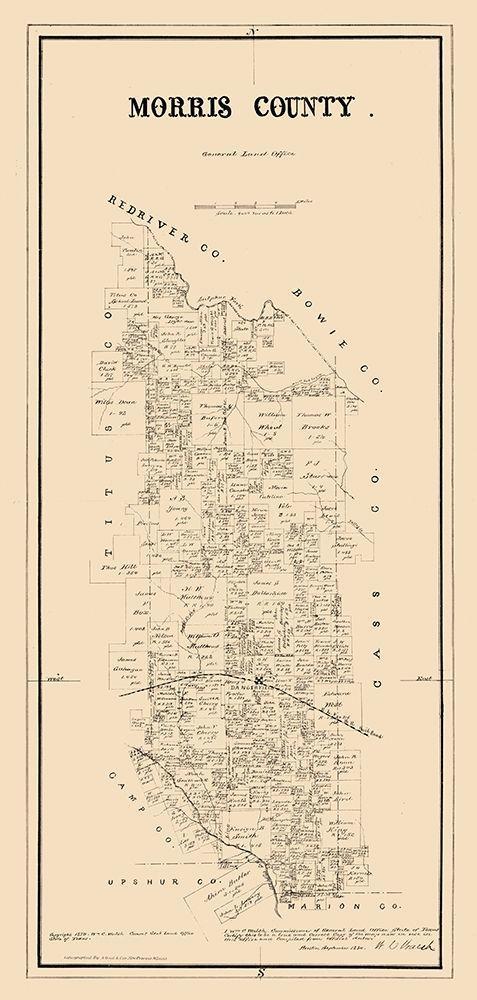 Morris County Texas - Walsh 1880 White Modern Wood Framed Art Print with Double Matting by Walsh
