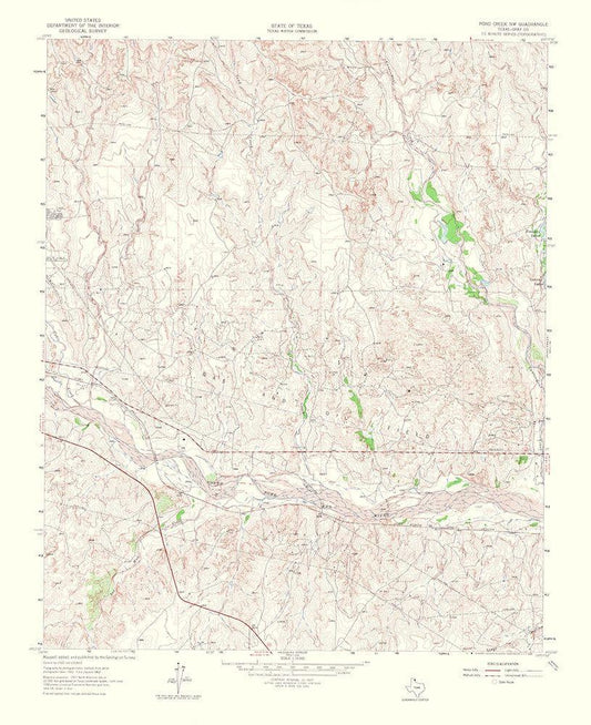 Pond Creek Northwest Texas Quad - USGS 1965 White Modern Wood Framed Art Print with Double Matting by USGS