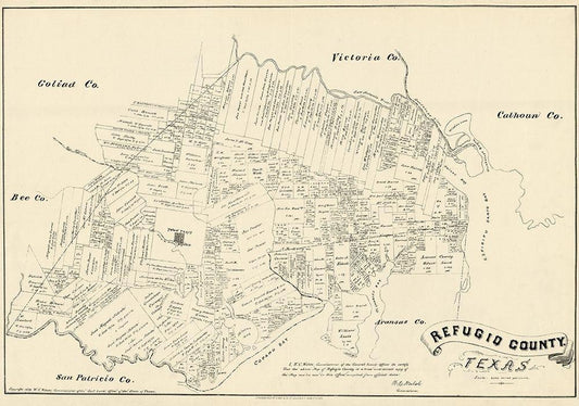 Refugio County Texas -1883 White Modern Wood Framed Art Print with Double Matting by Unknown