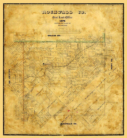Rockwall County Texas - Arlitt 1874 White Modern Wood Framed Art Print with Double Matting by Arlitt