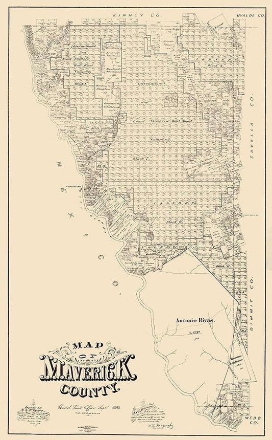 Maverick County Texas - McGaughey 1893 White Modern Wood Framed Art Print with Double Matting by McGaughey