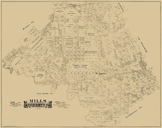 Mills County Texas - Hall 1888 White Modern Wood Framed Art Print with Double Matting by Hall