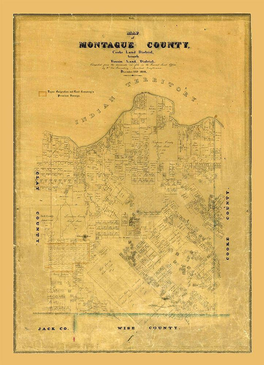 Montague County Texas - Rosenberg 1858 White Modern Wood Framed Art Print with Double Matting by Rosenberg