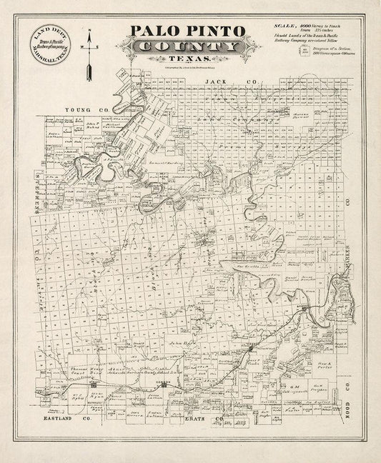 Palo Pinto County Texas - Gast 1880 White Modern Wood Framed Art Print with Double Matting by Gast