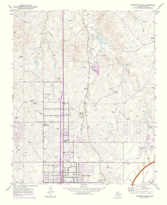 Pleasant Valley Texas Quad - USGS 1975 White Modern Wood Framed Art Print with Double Matting by USGS