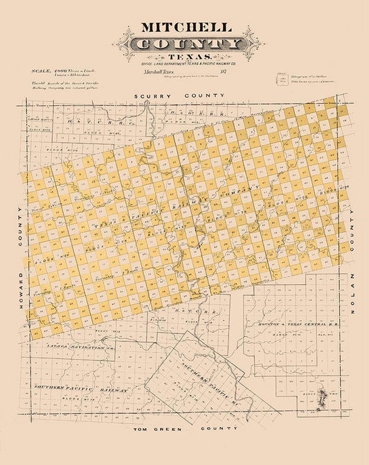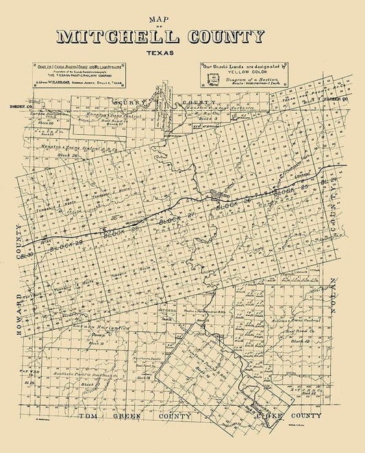Mitchell County Texas - Abrams 1890 White Modern Wood Framed Art Print with Double Matting by Abrams