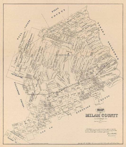 Milam County Texas - Walsh 1879 White Modern Wood Framed Art Print with Double Matting by Walsh