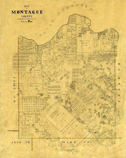 Montague County Texas - Stakeman 1868 White Modern Wood Framed Art Print with Double Matting by Stakemann