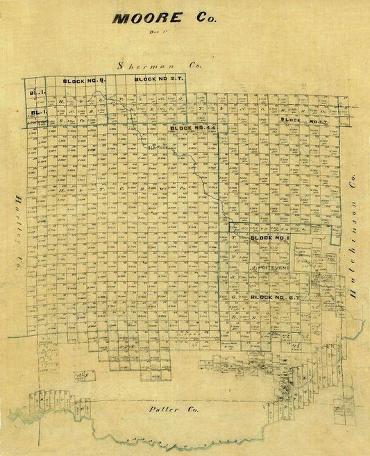 Moore County Texas -1878 White Modern Wood Framed Art Print with Double Matting by Unknown