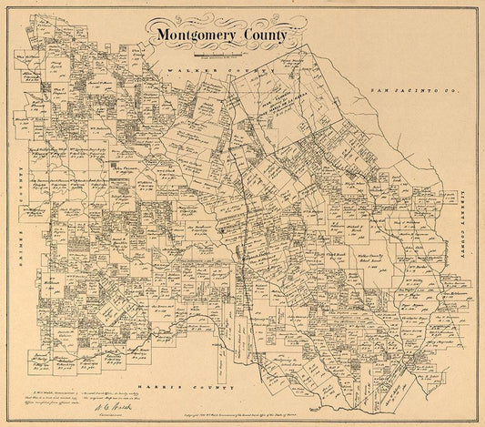Montgomery County Texas - Walsh 1880 White Modern Wood Framed Art Print with Double Matting by Walsh
