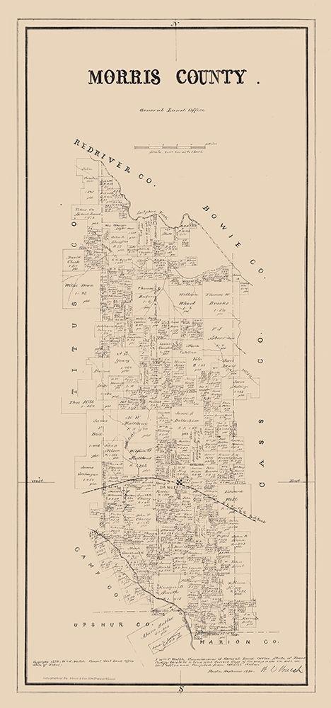 Morris County Texas -Walsh 1880 White Modern Wood Framed Art Print with Double Matting by Walsh