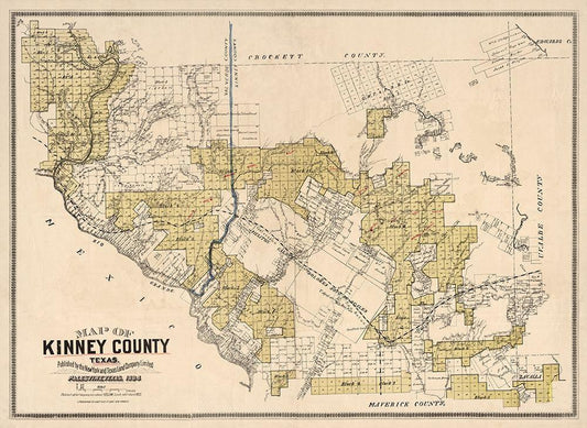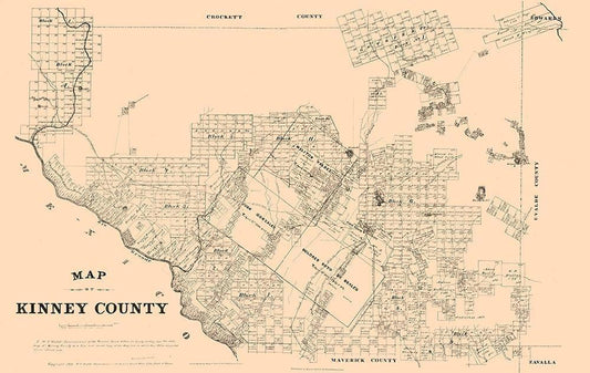 Kinney County Texas - Walsh 1879 White Modern Wood Framed Art Print with Double Matting by Walsh