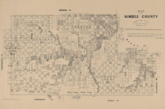 Kimble County Texas - Walsh 1879 White Modern Wood Framed Art Print with Double Matting by Walsh