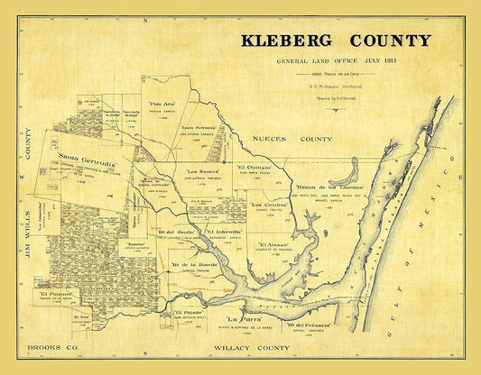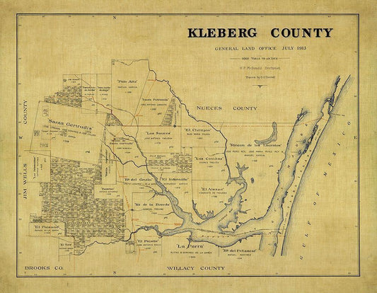 Kleberg County Texas - McDonald 1913 White Modern Wood Framed Art Print with Double Matting by McDonald