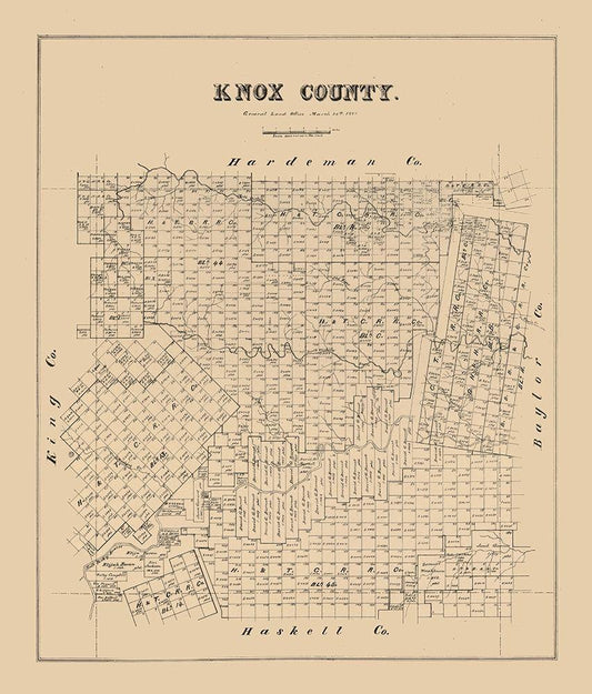 Knox County Texas -1880 White Modern Wood Framed Art Print with Double Matting by Unknown