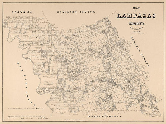 Lampasas County Texas - Walsh 1879 White Modern Wood Framed Art Print with Double Matting by Walsh