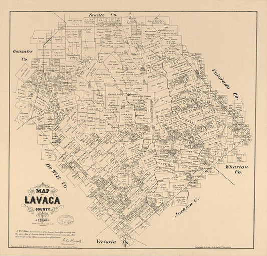 Lavaca County Texas - Walsh 1879 White Modern Wood Framed Art Print with Double Matting by Walsh