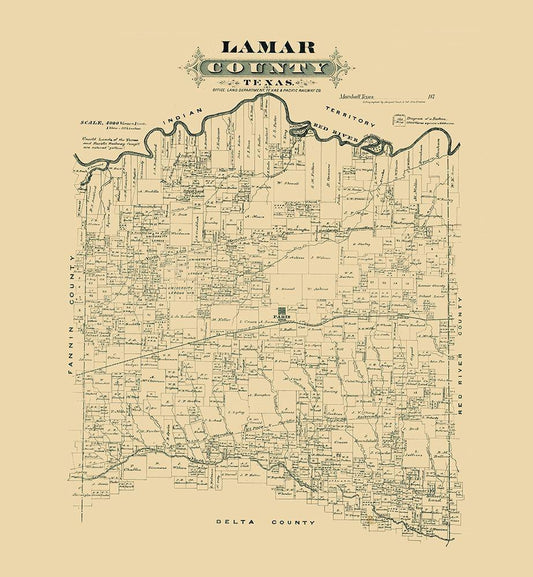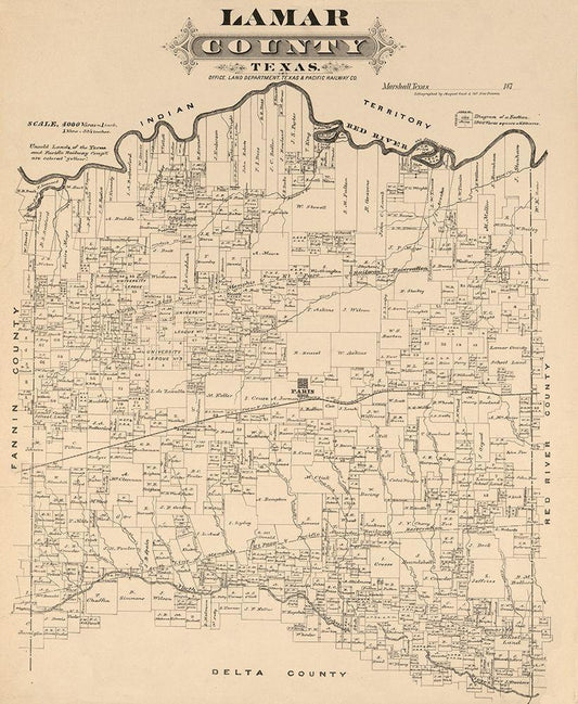 Lamar County Texas -1870 White Modern Wood Framed Art Print with Double Matting by Unknown