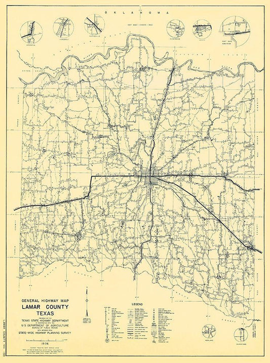 Lamar Texas Highway - Highway Dept 1936 White Modern Wood Framed Art Print with Double Matting by Highway Dept