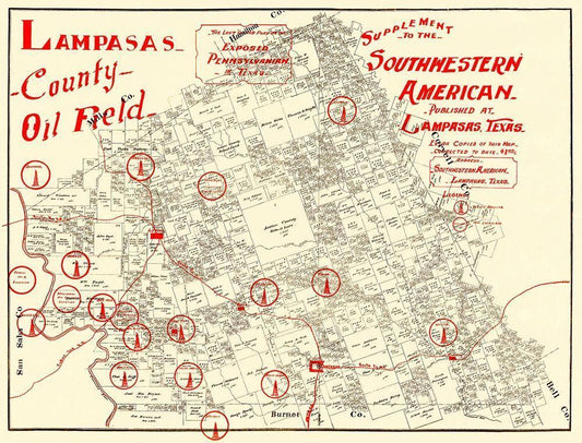 Lampasas County Oil Field Texas - 1920 White Modern Wood Framed Art Print with Double Matting by Unknown