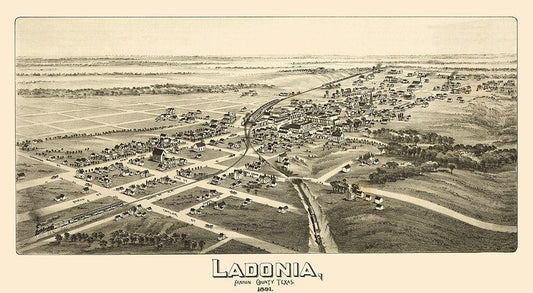 Ladonia Texas - Fowler 1891 White Modern Wood Framed Art Print with Double Matting by Fowler