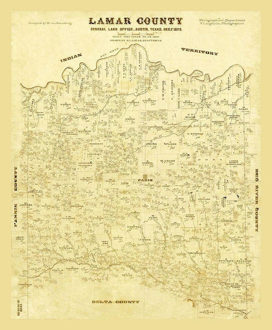 Lamar County Texas - Lucas 1873 White Modern Wood Framed Art Print with Double Matting by Lucas