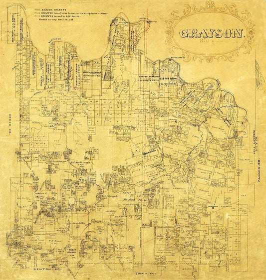 Grayson County Texas - 1853 White Modern Wood Framed Art Print with Double Matting by Unknown