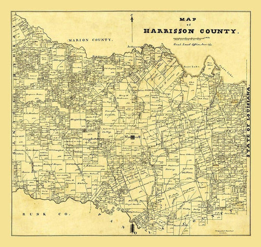 Harrison County Texas - 1871 White Modern Wood Framed Art Print with Double Matting by Unknown
