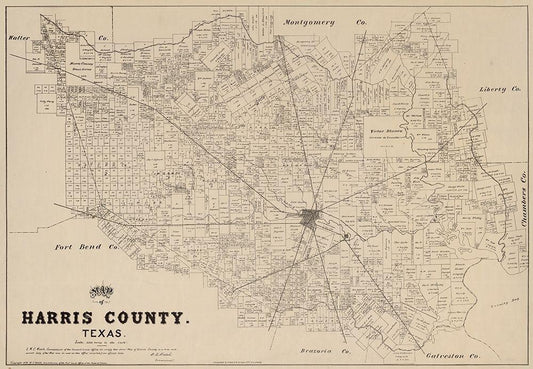 Harris County Texas - Walsh 1879 White Modern Wood Framed Art Print with Double Matting by Walsh