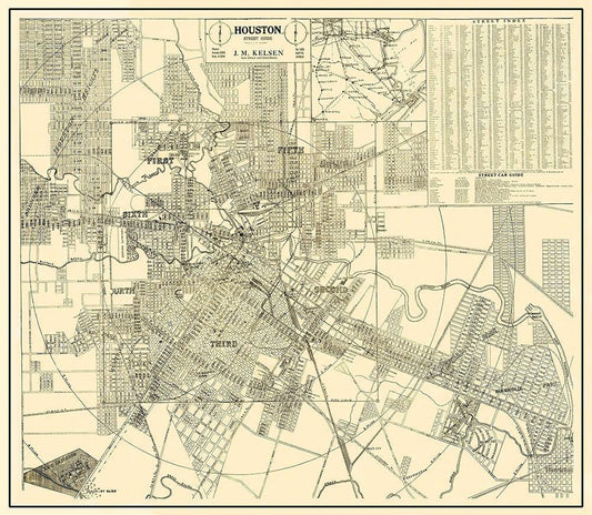 Houston Texas Street Guide - Kelsen 1913 White Modern Wood Framed Art Print with Double Matting by Kelsen