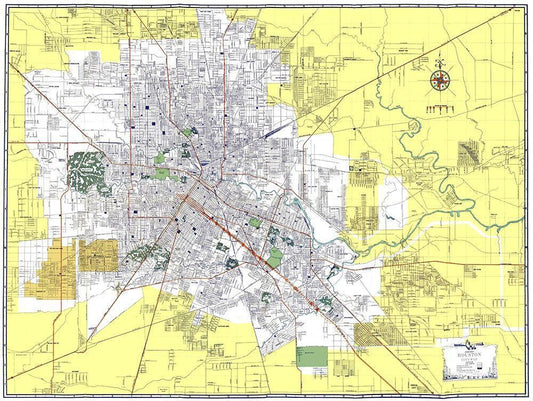 Houston Texas - Ashburn 1950 White Modern Wood Framed Art Print with Double Matting by Ashburn