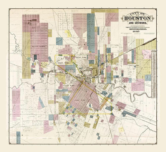 Houston Texas - Whitty 1895 White Modern Wood Framed Art Print with Double Matting by Whitty