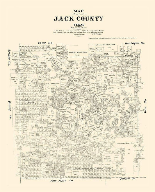 Jack County Texas - Walsh 1879 White Modern Wood Framed Art Print with Double Matting by Walsh