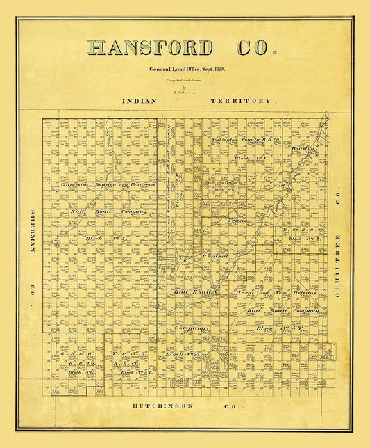 Hansford County Texas - Beaumont 1889 White Modern Wood Framed Art Print with Double Matting by Beaumont