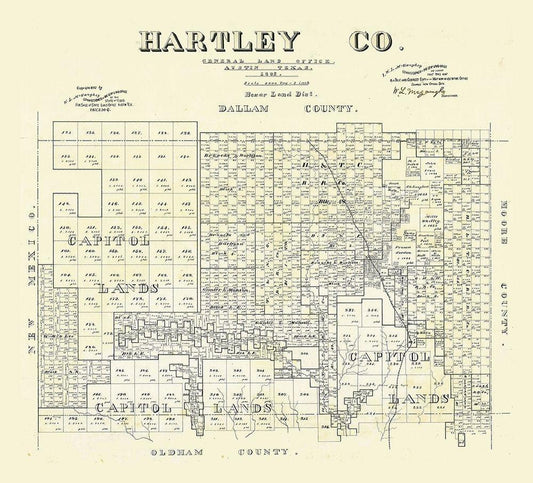 Hartley County Texas - McGaughey 1892 White Modern Wood Framed Art Print with Double Matting by McGaughey