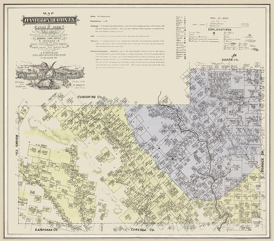 Hamilton County Texas - Roessler 1876 White Modern Wood Framed Art Print with Double Matting by Roessler