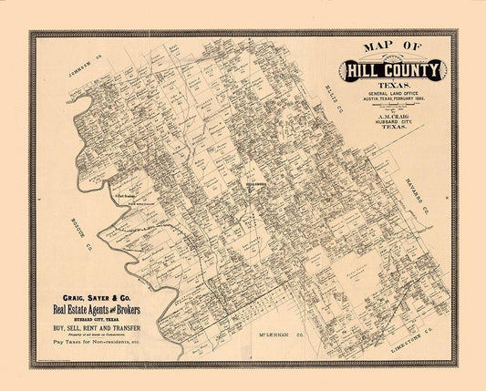 Hill County Texas - Craig 1886 White Modern Wood Framed Art Print with Double Matting by Craig