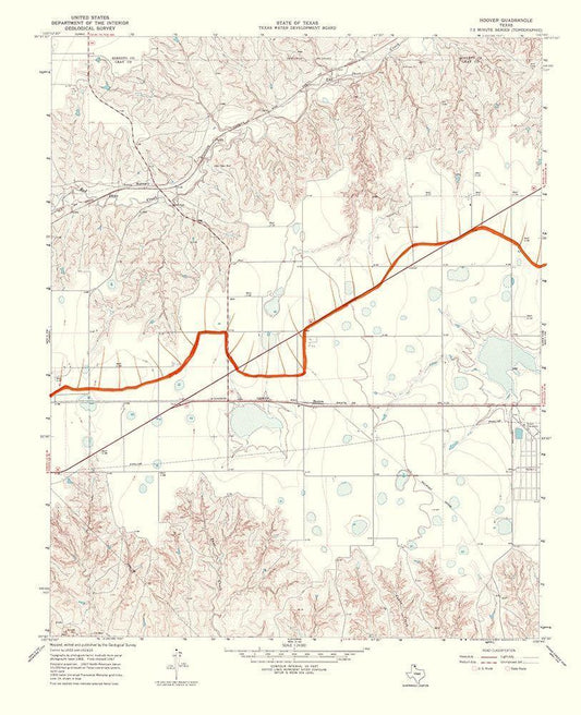 Hoover Texas Quad - USGS 1969 White Modern Wood Framed Art Print with Double Matting by USGS
