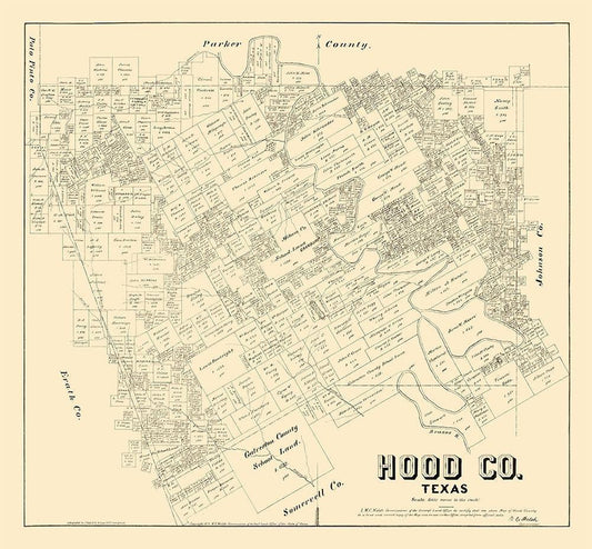Hood County Texas - Walsh 1879 White Modern Wood Framed Art Print with Double Matting by Walsh