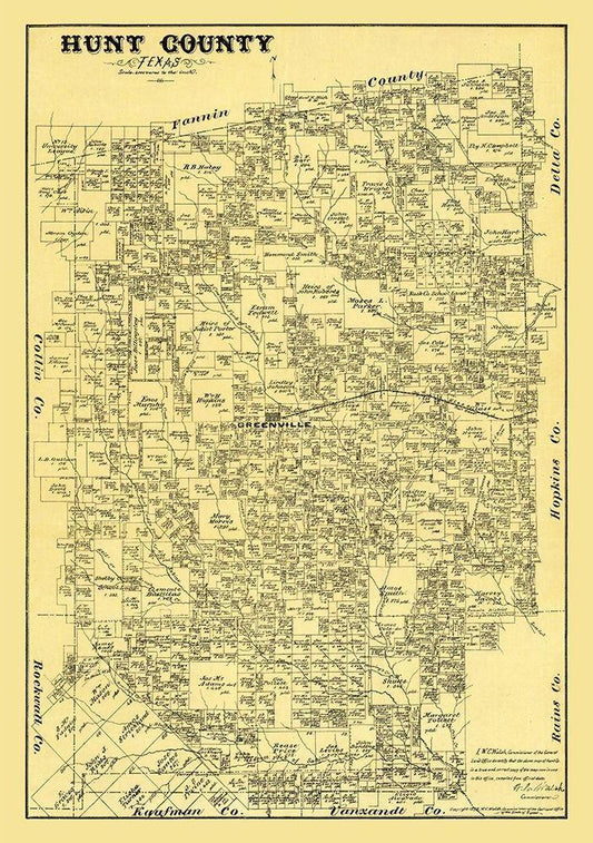 Hunt County Texas - Walsh 1879 White Modern Wood Framed Art Print with Double Matting by Walsh